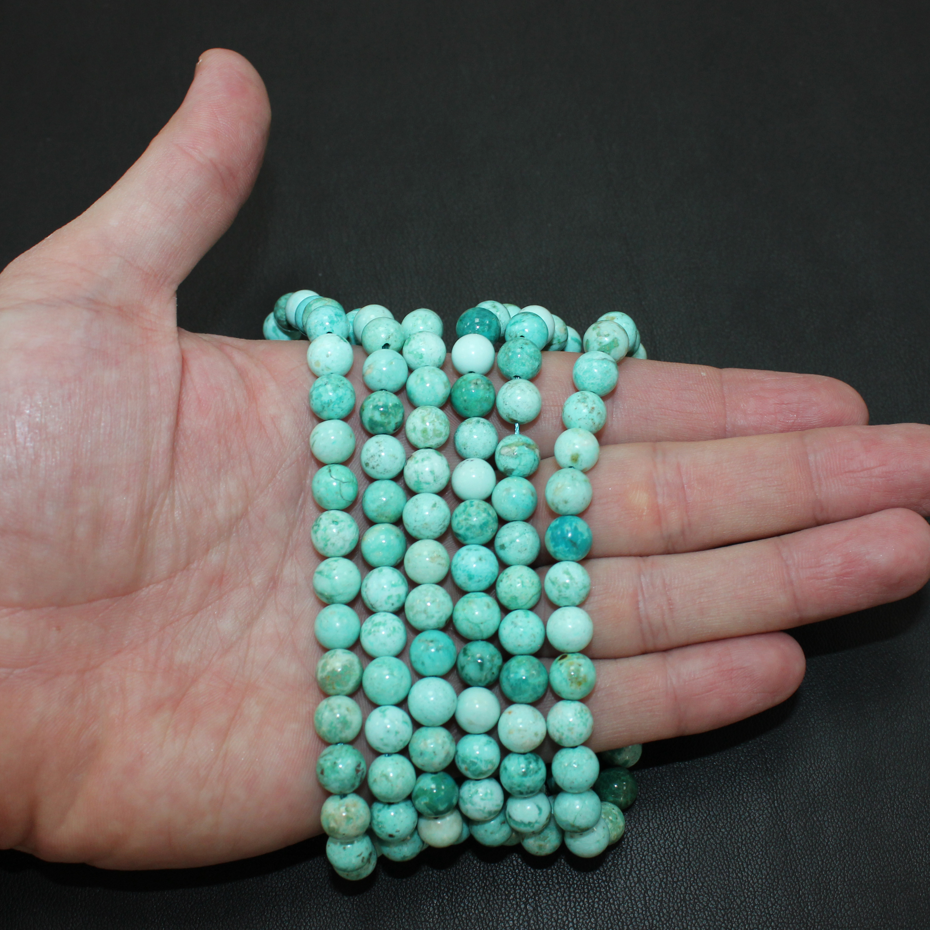 7,5мм - примерное количество бусин в нити 51шт, вес 25гр, отверстие примерно 1мм