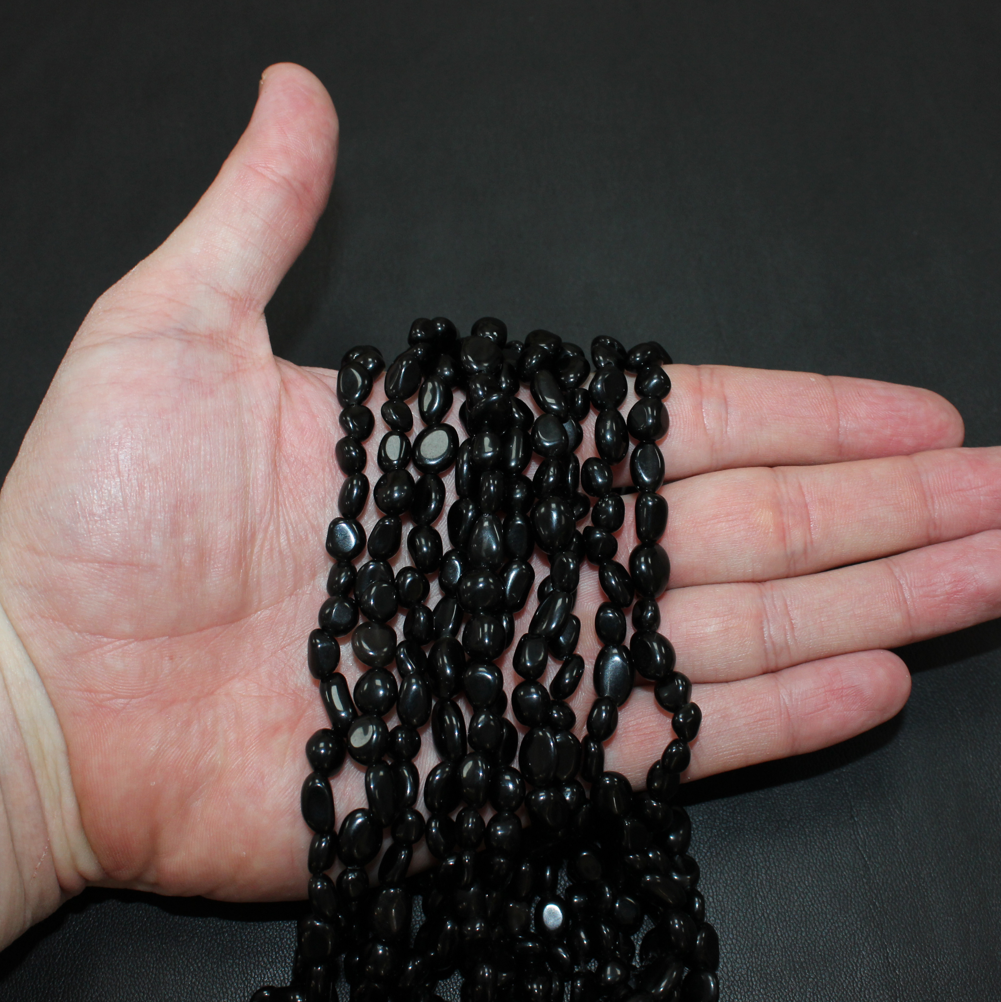 6-9мм - примерное количество бусин в нити 54шт, вес 19гр, отверстие примерно 0,8мм.