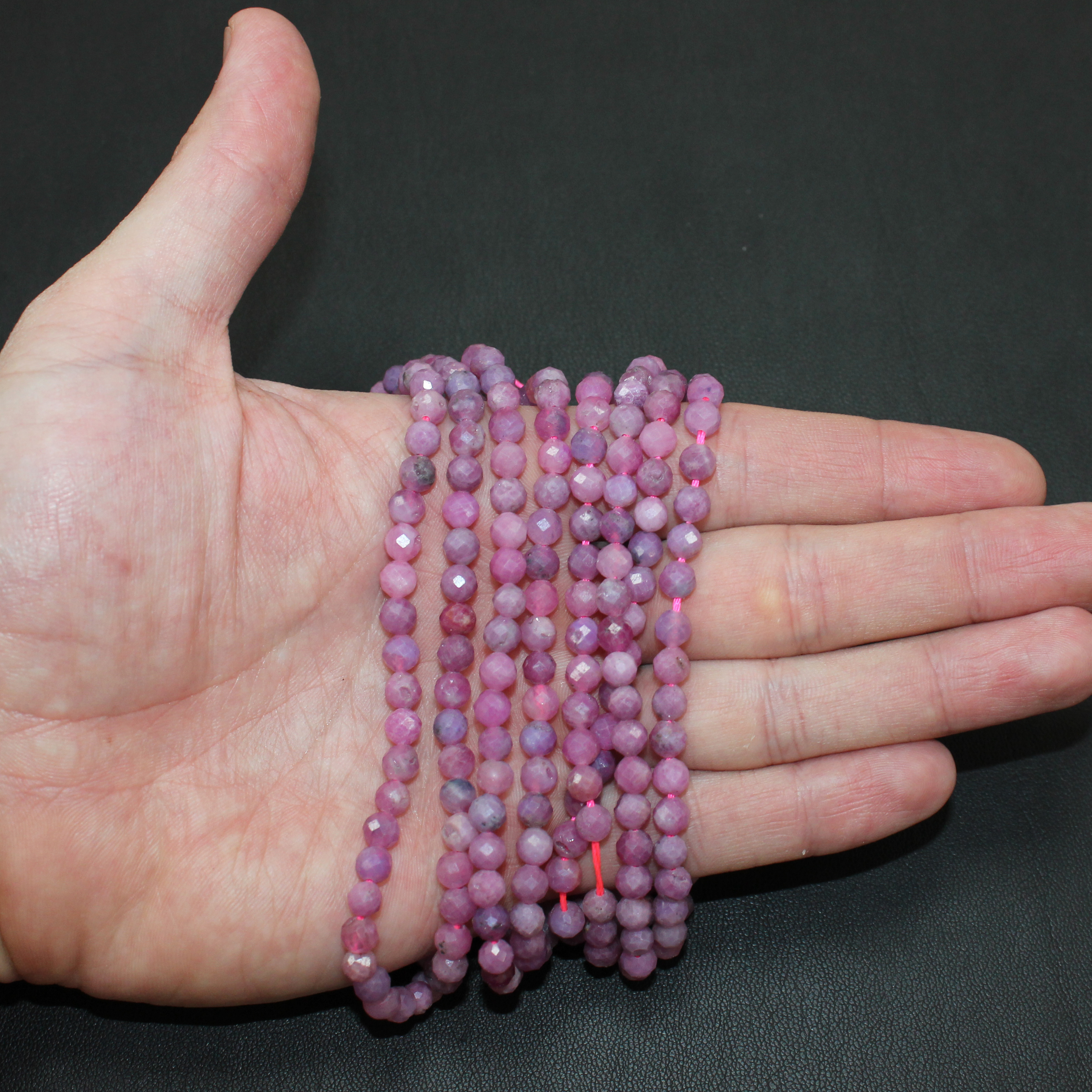 5мм - примерное количество бусин в нити 74шт, отверстие примерно 0.7мм