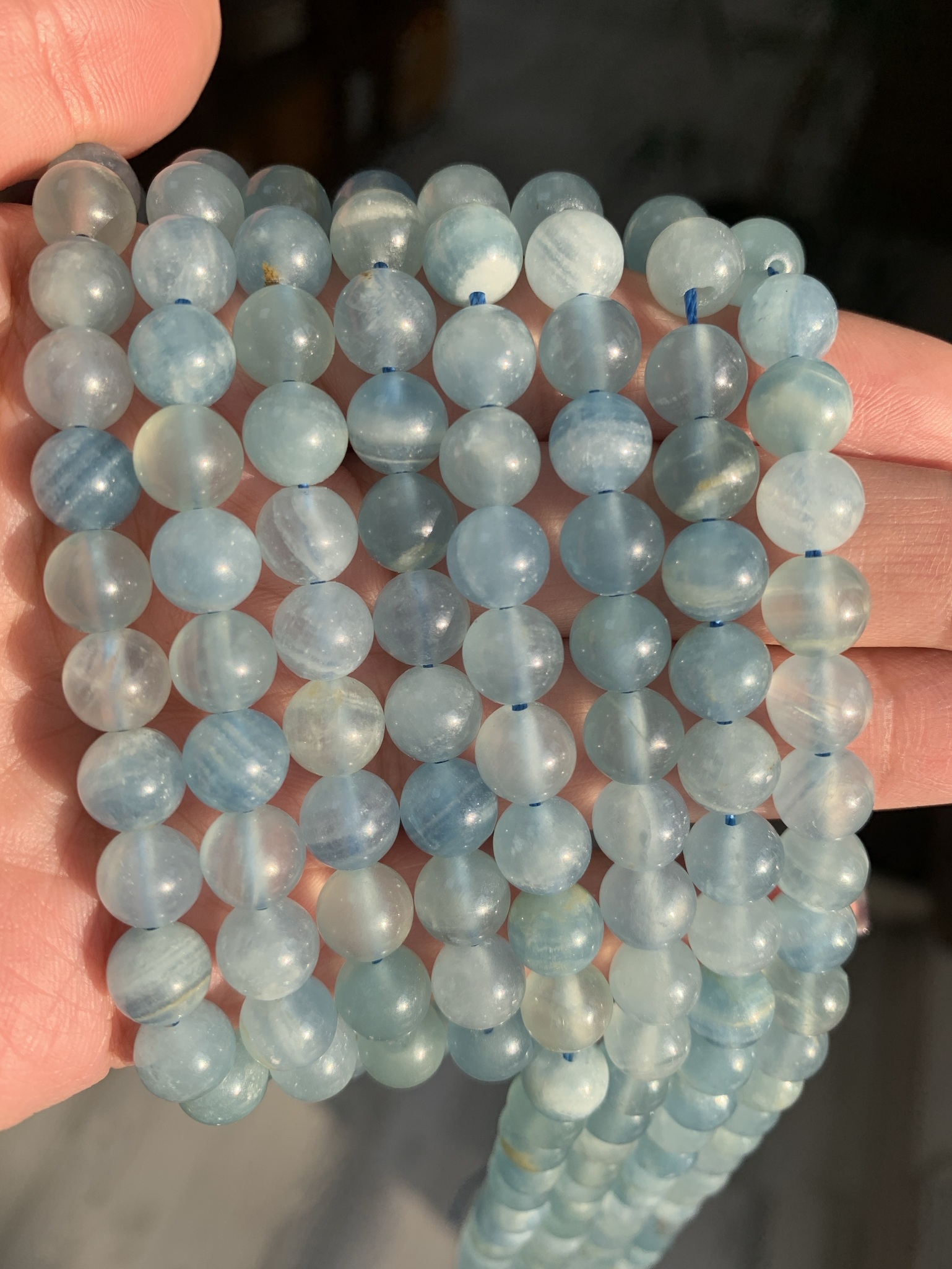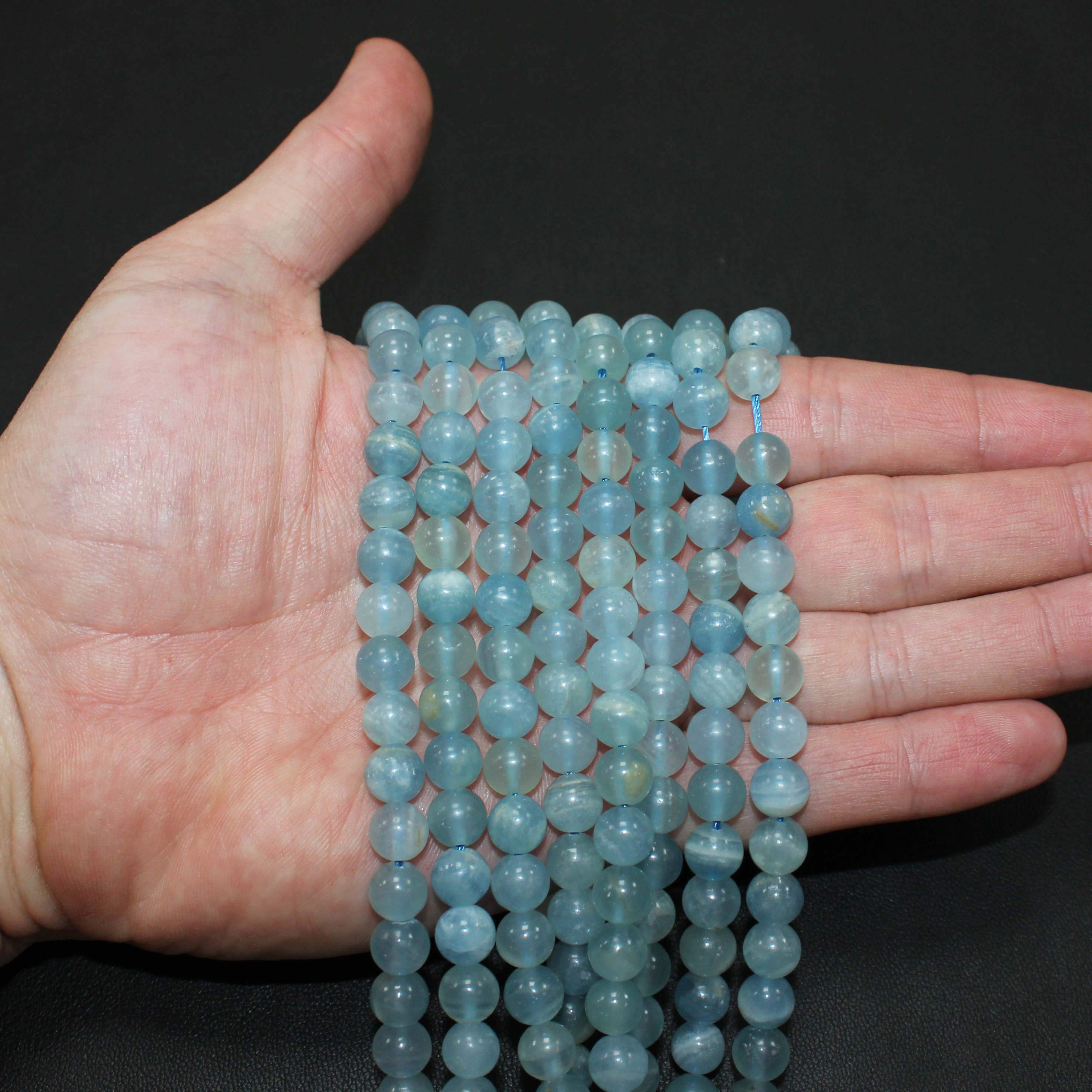 8мм - примерное количество бусин в нити 52шт, вес 35гр, отверстие примерно 1мм