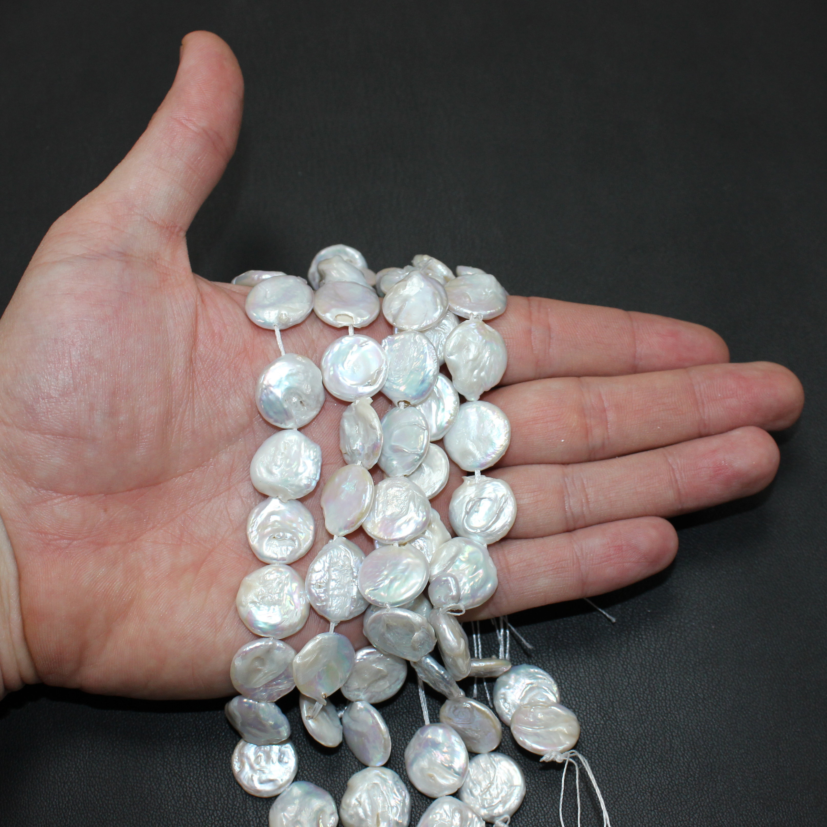 15мм - примерное количество бусин в нити 12шт, вес 14гр, отверстие примерно 0,5мм